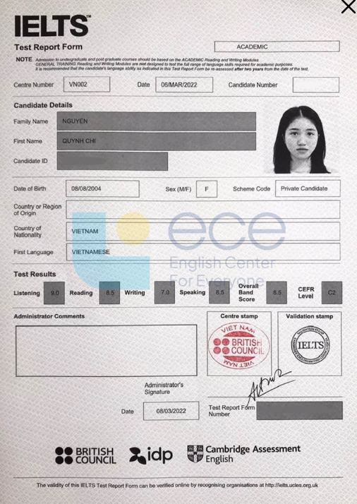 Lộ trình học được áp dụng tại ECE đã giúp nhiều học viên đạt 8.0 IELTS