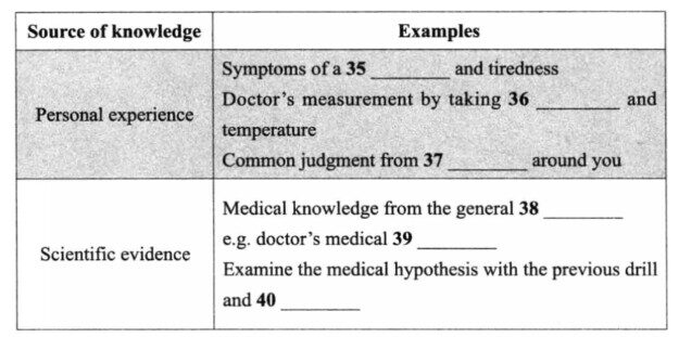 38. practitioner: Đoạn H nhắc đến nguồn tin uy tín nhất: “…medical knowledge provided by the general practitioner.”